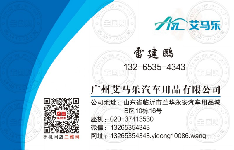 广州艾马乐汽车用品名片-13265354343