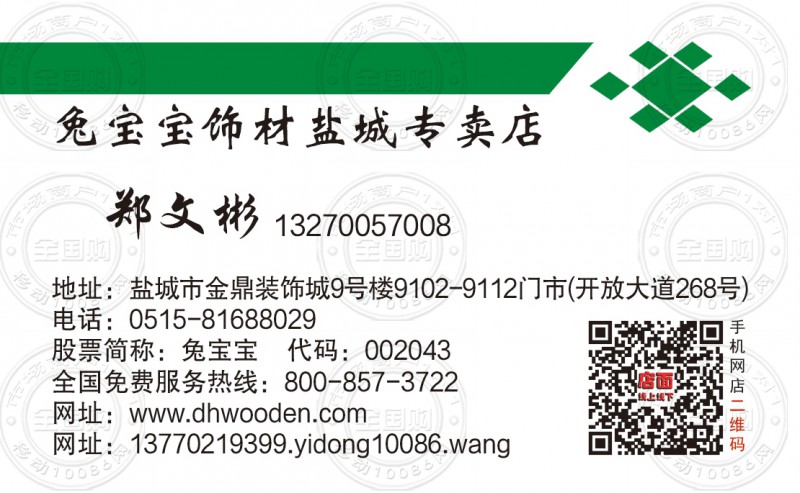 兔宝宝饰材盐城专卖店名片-13770219399