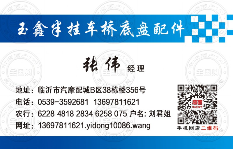 玉鑫半挂车桥底盘配件名片-13697811621