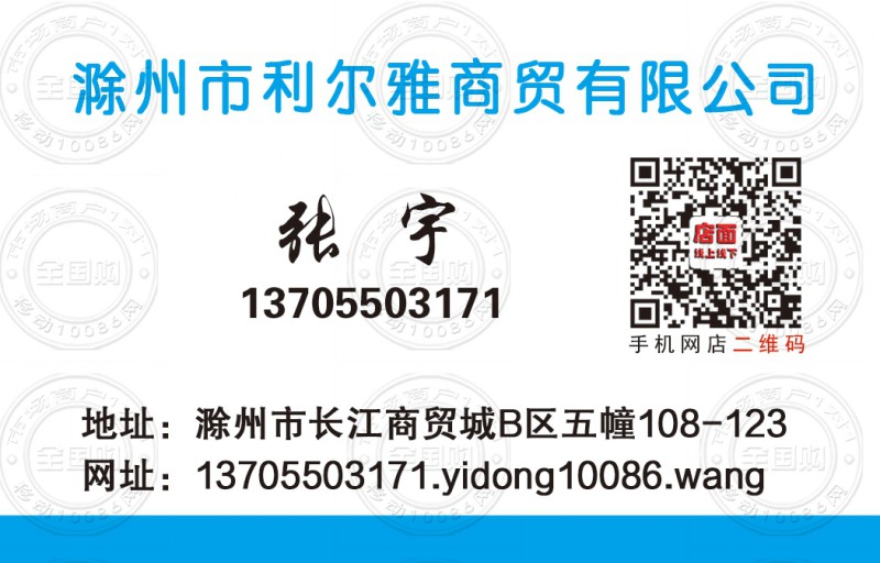 滁州市利尔雅商贸有限公司名片-13705503171