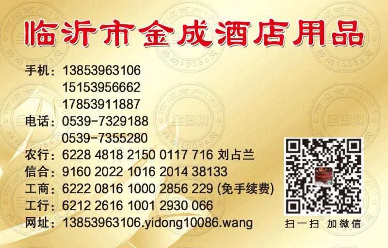 临沂市金成酒店用品名片-13853963106