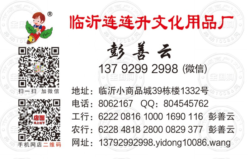 临沂连连升文化用品厂名片-13792992998