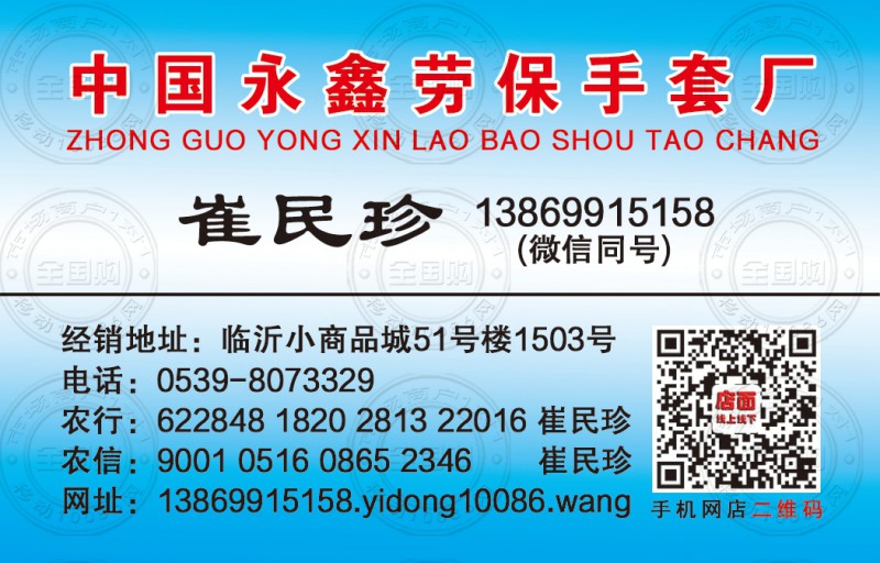 中国永鑫劳保手套厂名片-13869915158
