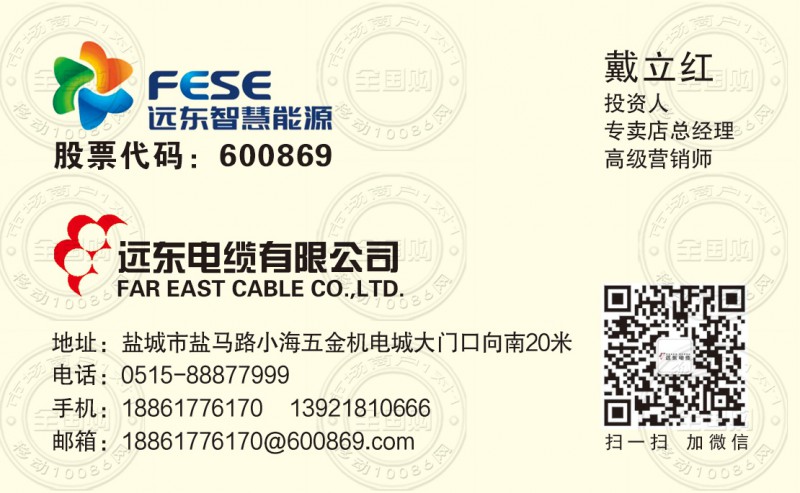 远东电缆有限公司专卖店名片-18861776170