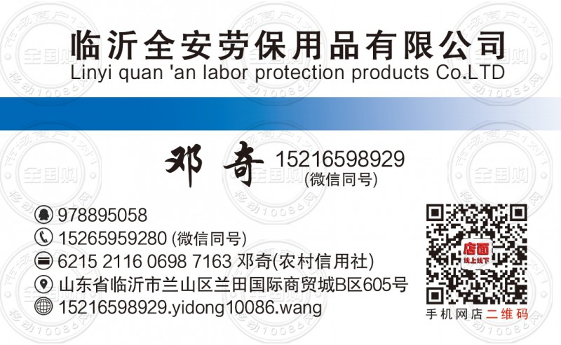 临沂全安劳保用品有限公司名片-15216598929