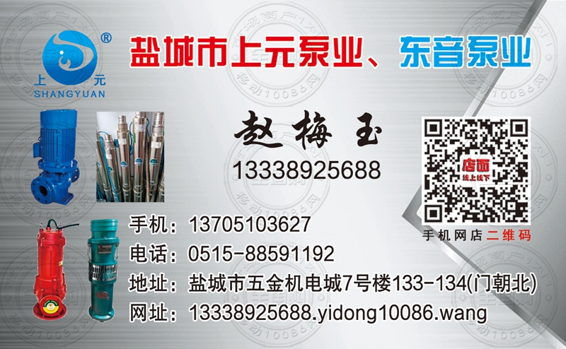盐城市上元、东音泵业专卖店名片-13338925688