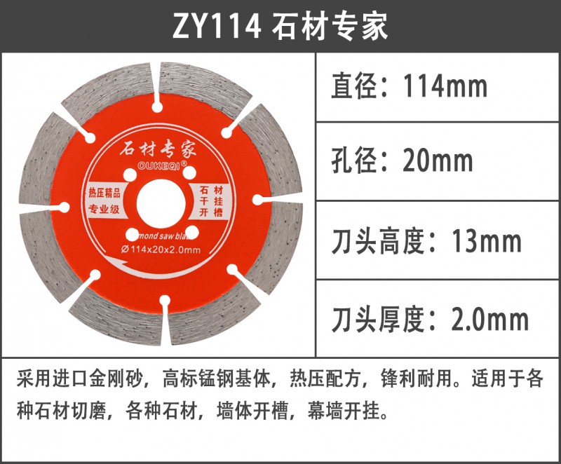 采用进口金刚砂,高标锰钢基体,热压配方,锋利耐用。适用于各