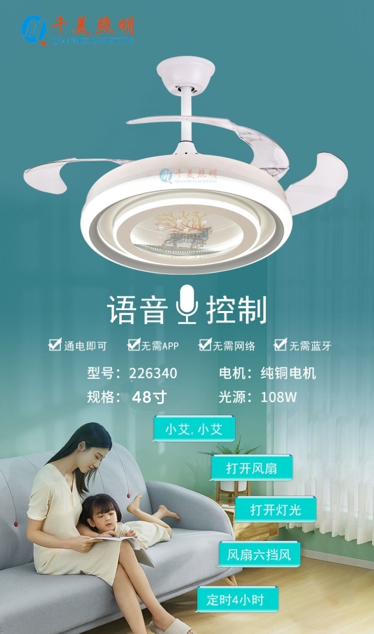 千美 离线语音控制 隐形风扇灯 42寸/48寸