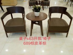 桌子k63/椅子689棕皮革棕