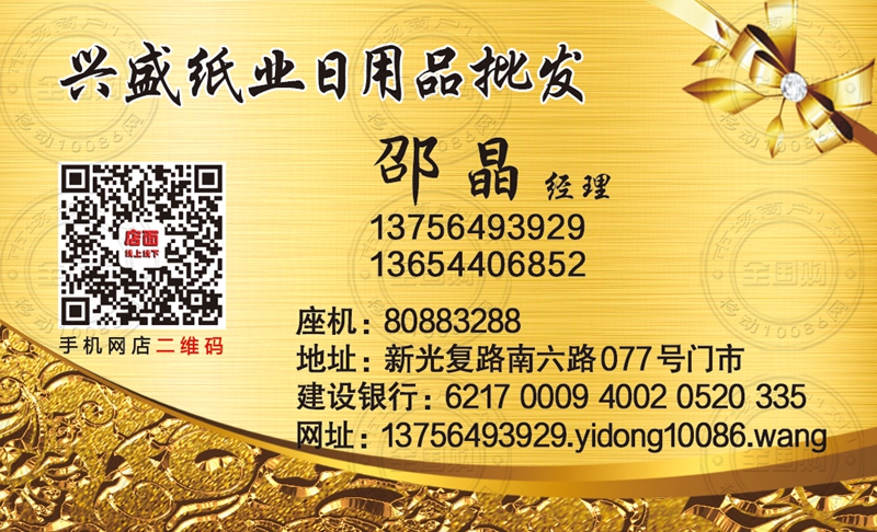 长春兴盛纸业日用品批发名片-13654406852