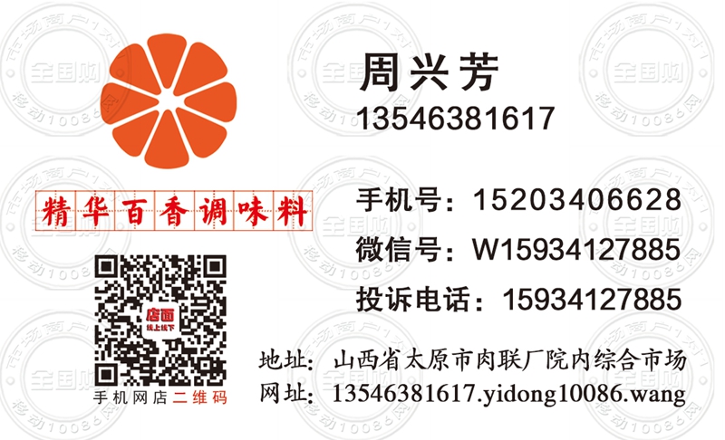 太原精华百香调味料名片-15203406628