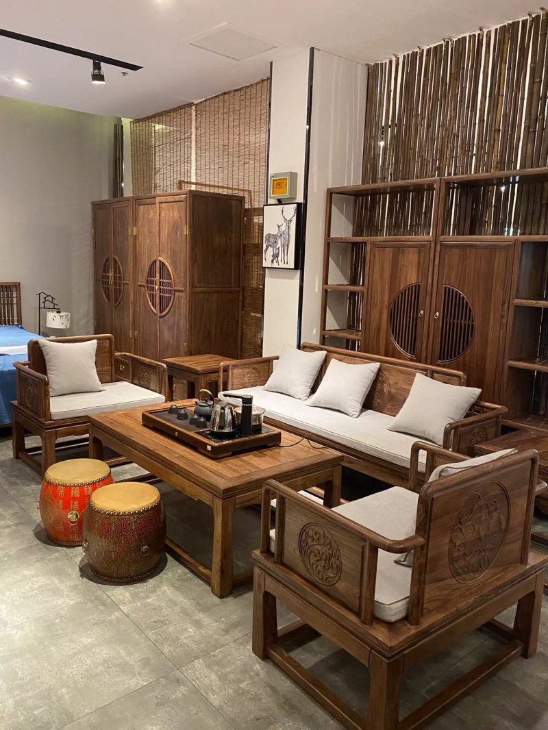 新中式北方老榆木沙发搭配